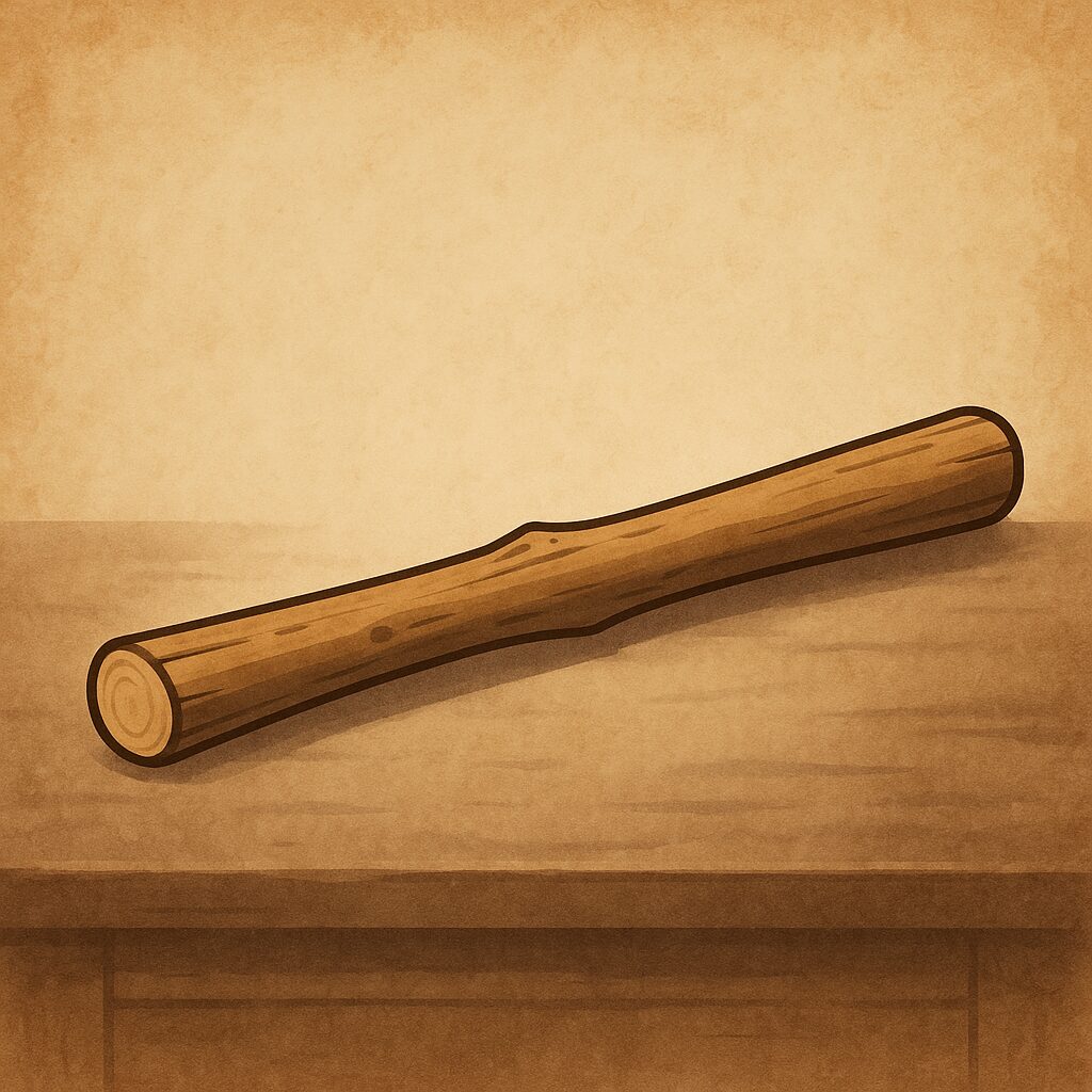 ひのきのぼうは、ドラゴンクエストシリーズにおける最弱クラスの近接武器として知られ、ゲーム開始直後の短いフェーズで装備されることが多い道具です。作中の描写では、檜材を削り出した細身の棒という素朴な意匠で、柄の端を布や革で巻いた簡素な握りが示されます。武器としての攻撃力は低く、ダメージ期待値は同時期に入手できる棍棒や銅の剣などに劣後しますが、初期装備の穴を一時的に埋める、あるいは混乱時の誤攻撃ダメージを抑えるといった、ゲームシステム上の限定的な役割が付与されています。
