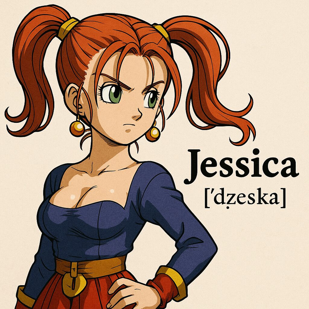 英語版ではゼシカの表記はJessicaが用いられるのが一般的です。この綴りは英語圏で広く通用する女性名で、音韻的には語頭のJが有声後部歯茎破擦音に近い音価を取り(日本語のジに近い)、IPAでは/ˈdʒɛsɪkə/と転写されるのが標準的です。読み方の目安としては「ジェシカ」に近く、片仮名転写が「ゼシカ」となるのは日本語シリーズ内の伝統的な音写ルールが背景にあると解釈できます。ローカライズ実務では、シリーズ内の既存資産(音声、字幕、UI)との整合、可読性、文化的受容性が優先され、結果として英語圏ではJessicaに統一されてきたという経緯があります。