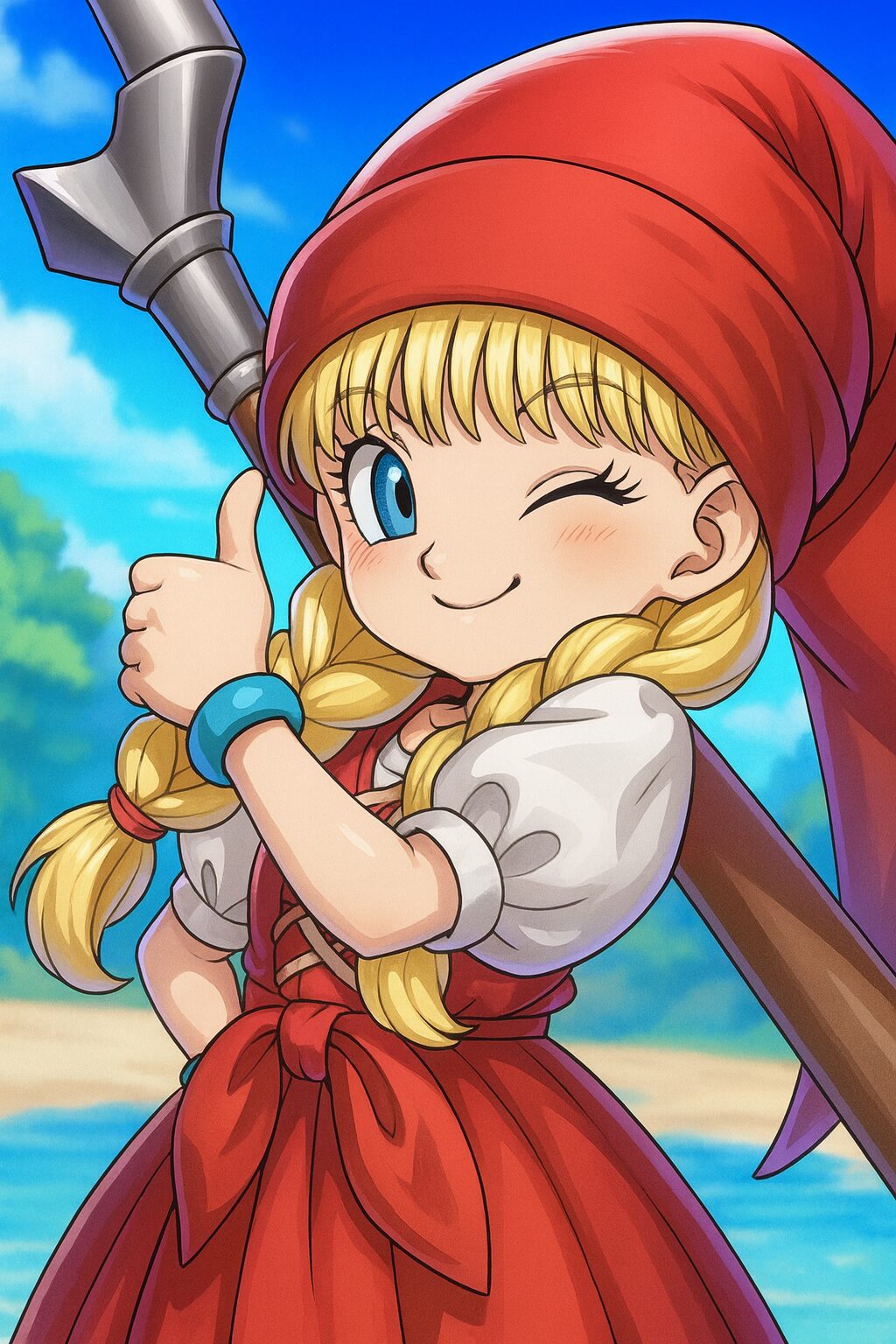 ベロニカは『ドラゴンクエストXI S』の物語序盤で登場し、プレイヤーの仲間として行動を共にする重要なキャラクターです。見た目は幼い少女ですが、実年齢は成人に近いとされ、物語上での出来事により子どもの姿に変えられているという設定が付与されています。このギャップこそが彼女の魅力のひとつであり、声優・内田真礼による成熟した演技と可愛らしい声質のバランスが、キャラクターの立体感を生み出しています。