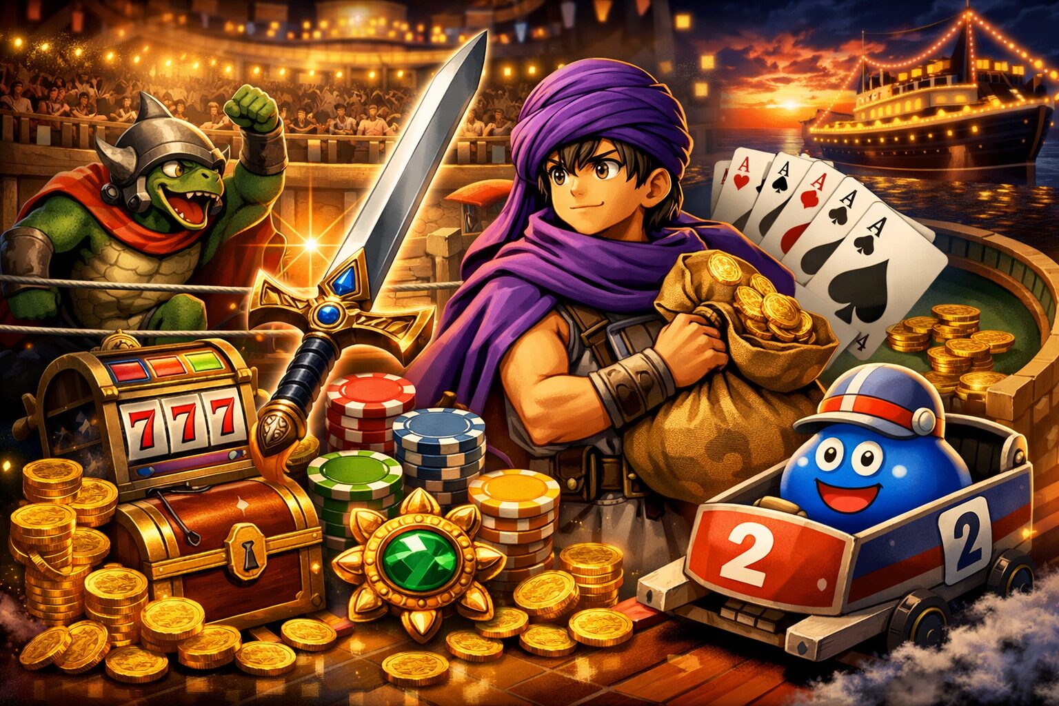 この記事では、ドラゴンクエスト5のカジノを「無理なく」「損しにくく」遊ぶために、オラクルベリーとカジノ船の違い、モンスター格闘場やスライムレースの立ち位置、そして景品一覧と交換のおすすめまで、まとめて整理します。